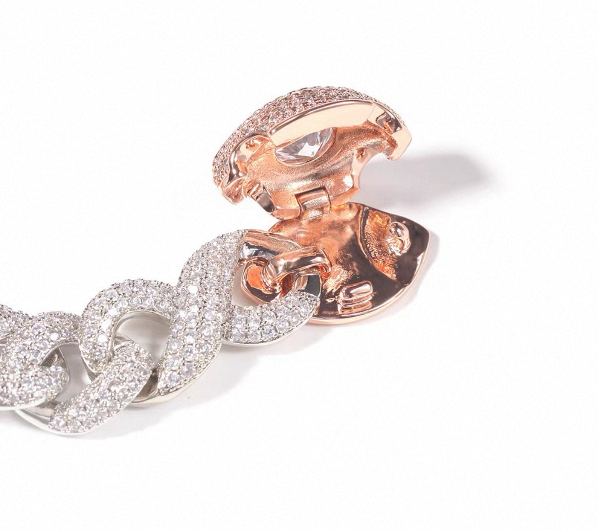 このブレスレットは、マイアミチェーンデザインを取り入れたスタイリッシュでユニークなアイテムが特徴です。洗練された雰囲気を持ちながら、存在感があり、日常使いから特別なシーンまで幅広くご活用いただけます。高品質な素材を使用し、熟練の職人による丁寧な仕上げが施されていますので、安心して身につけることができる一品です。このブレスレットを身につけることで、手元に魅力的なアクセントを加え、周囲の視線を惹きつけることができるでしょう!